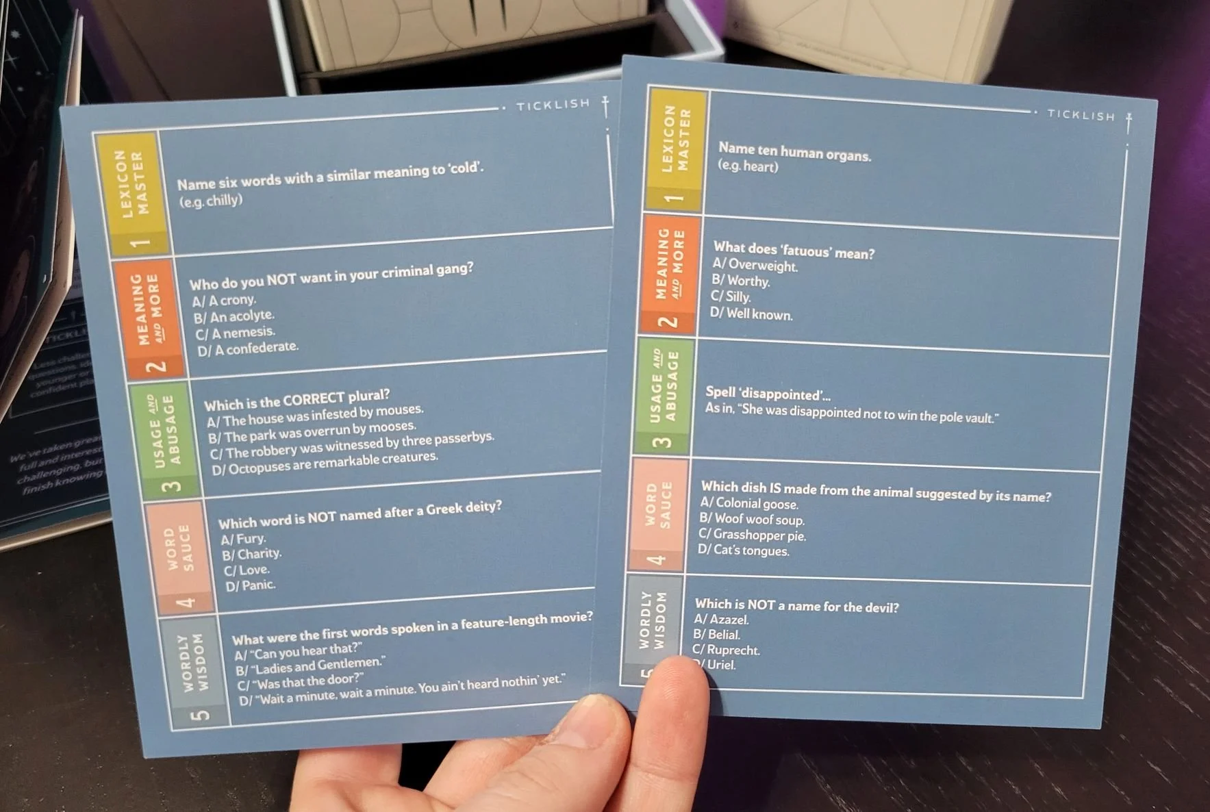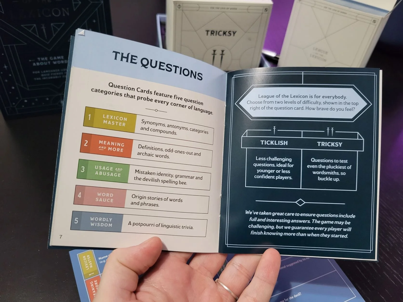 Normally, I hate trivia games because the topics are always things like sports or pop culture, which I have no interest in. However, this sounded like a trivia game I could get behind. It’s a nerdy word game all about language and obscure facts and knowledge. It arrived in the mail just in time for Christmas and I’ve had a chance to play it a few times since then.